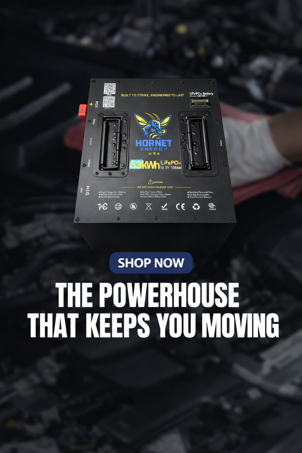 Hornet Energy is proud to announce All Kits include IOS & Android APP with OTA - 300A BMS - Charger - SOC - Charger Receptacle - Charger Cord - Heating Element - Fire Suppression and rated IP66